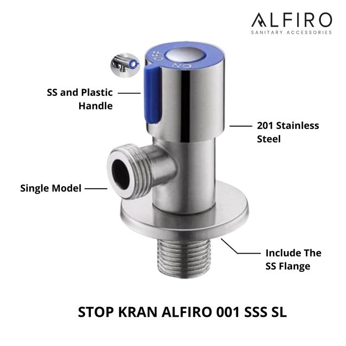 Alfiro Stop Kran Alfiro 001 SSS SL- Stainless Steel 201 Anti Karat dengan Handle Plastik dan Flange SS